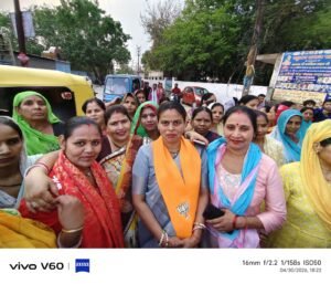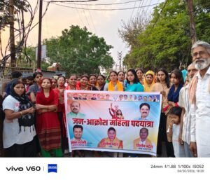 विपक्ष द्वारा महिला आरक्षण बिल का विरोध किए जाने पर वार्ड 6 की पार्षद श्रीमती सुनैना देवी विनोद पटेल जी ओर मंडल अध्यक्ष हेमंत त्यागी जी के नेतृत्व में जन आक्रोश पद यात्रा का आयोजन किया गया ।