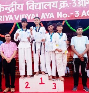 रीजनल गेम्स में गोल्ड मेडल हासिल करने पर व्योम त्यागी का चयन के.वी नेशनल गेम्स के लिय हुआ है केंद्रीय विद्यालय के छात्र शौर्य चौधरी ने अंडर 14 में 27 से 29 किलो भार वर्ग में गोल्ड मैडल हासिल कर नेशनल खेलने के लिए टिकट पक्का किया है